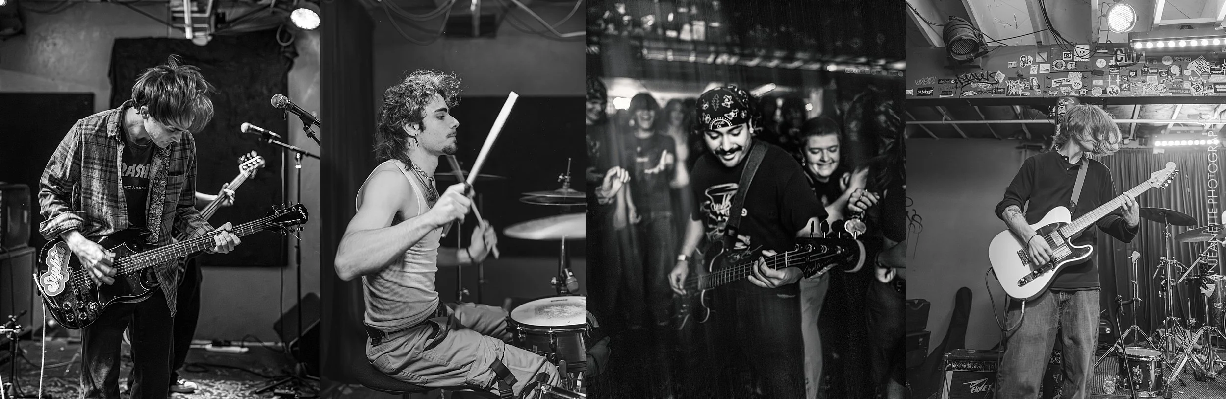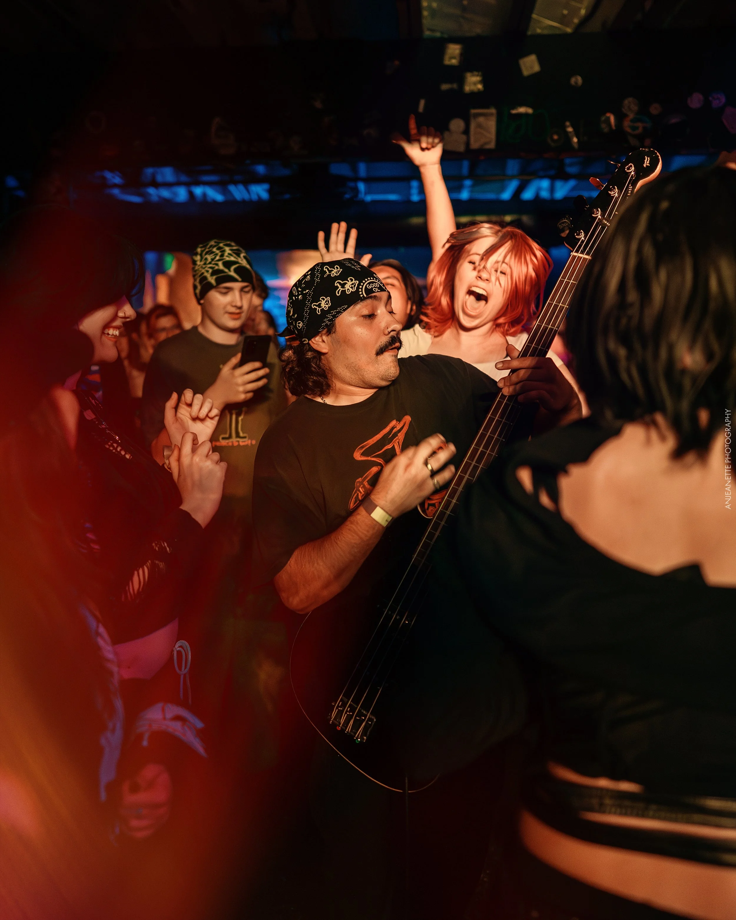 So the environment was charged with excited people quite literally bouncing up and down as Biiiuh started to play, and that was BEFORE drummer Evan Irani blindfolded himself to tear up his kit and David Hunt jumped in the mosh pit with his bass! So much energy and expression makes taking actions photos of Biiiuh FUN.