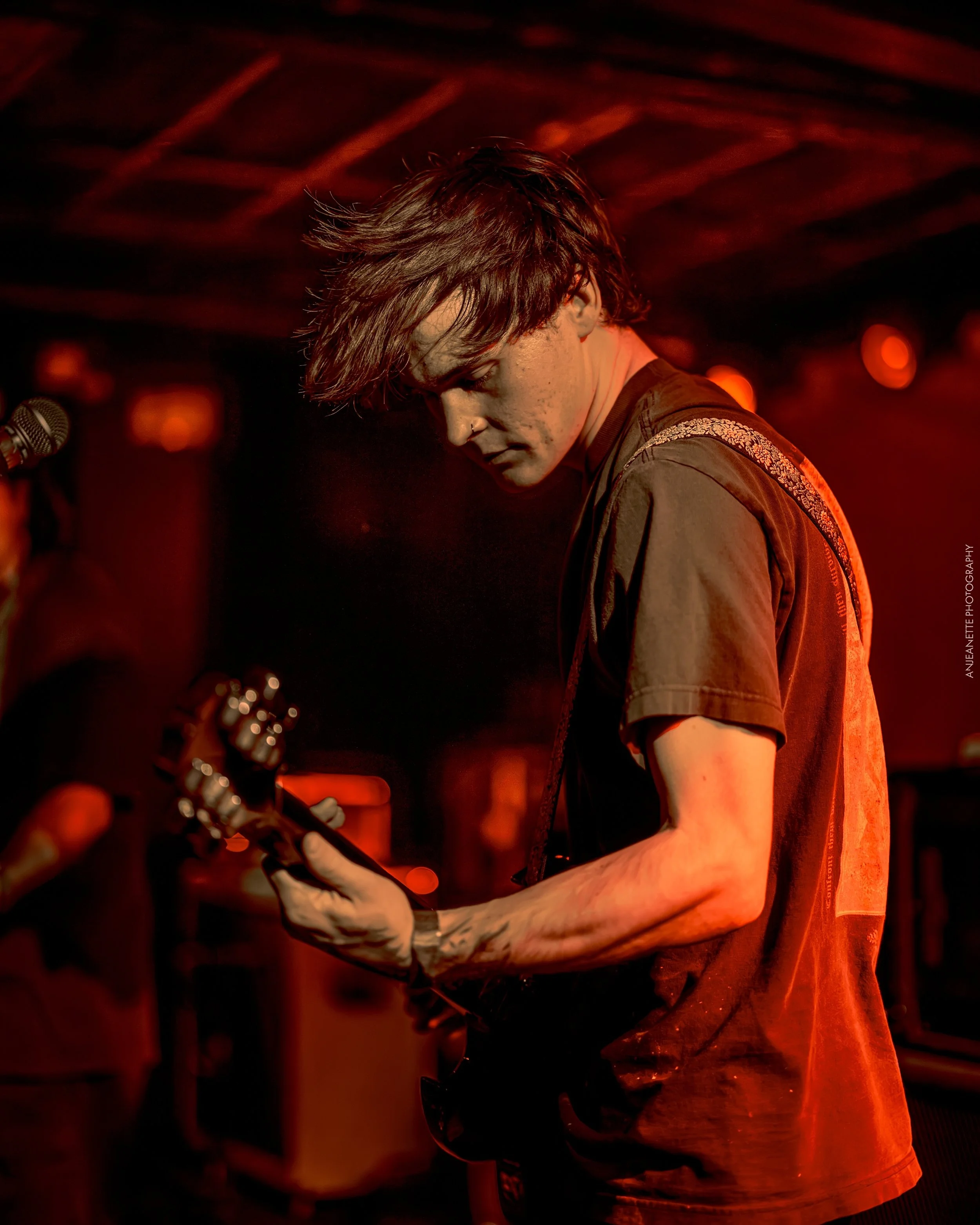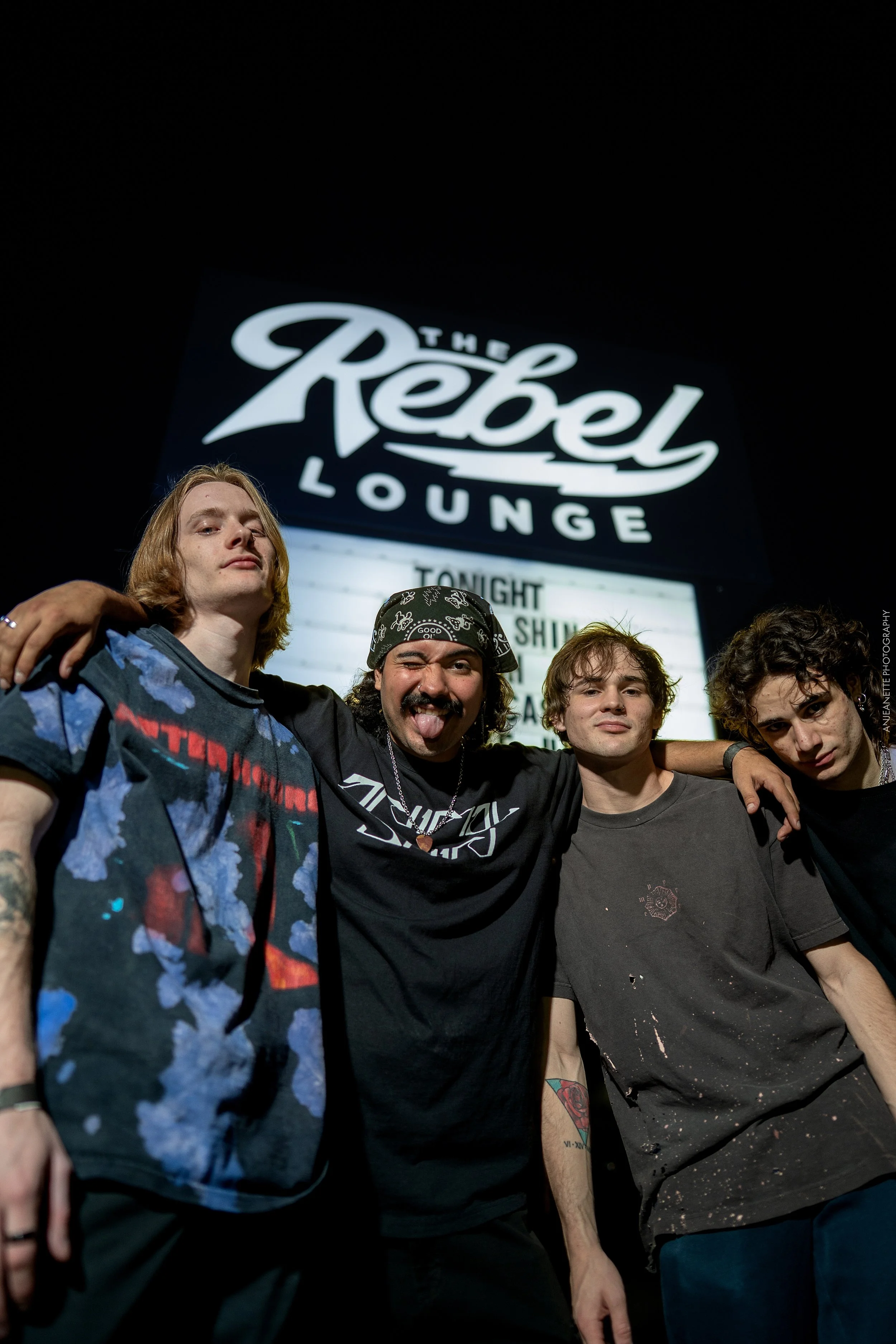 Biiiuh (bee- uh) have been playing shows a little over a year and already have a large fan base in Phoenix, Arizona. From their performance you’d never know they haven’t been playing together for years. When I think about Biiiuh’s sound what I hear is serious range, an alt rock base with a 70s post punk hardcore feel and great lyrics. Some almost trap vibes on their most popular song on Soundcloud “Sleep Deprived”. Their newest album Noisy House is perfectly described as ‘noisy shoegaze with a high energy twist.’ A few days later, I followed them over to the iconic and historical Rebel Lounge in Phoenix for the albumrelease show on February 28th. I chatted with the guys outside before the doors opened about everything from how lit the Nile show was to Anime. They are all so chill and unassuming, cool guys who don’t realize how cool they are. They celebrated the Rebel release with exclusive merchandise & a merch giveaway, but mostly with their incredible set of heavy & melancholic songs.